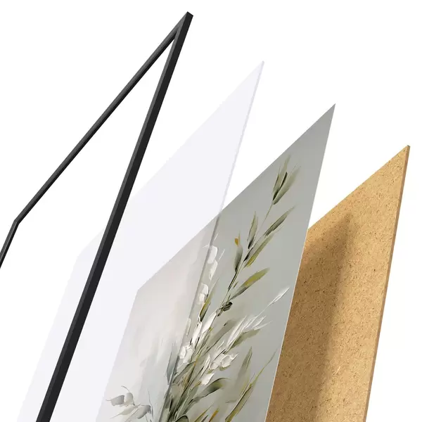 Постер складається з рами, оргскла, надрукованого зображення та підкладки з ДСП. Завдяки кріпленням на звороті плакат можна одразу ж повісити на стіну.