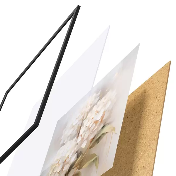 Постер складається з рами, оргскла, надрукованого зображення та підкладки з ДСП. Завдяки кріпленням на звороті плакат можна одразу ж повісити на стіну.