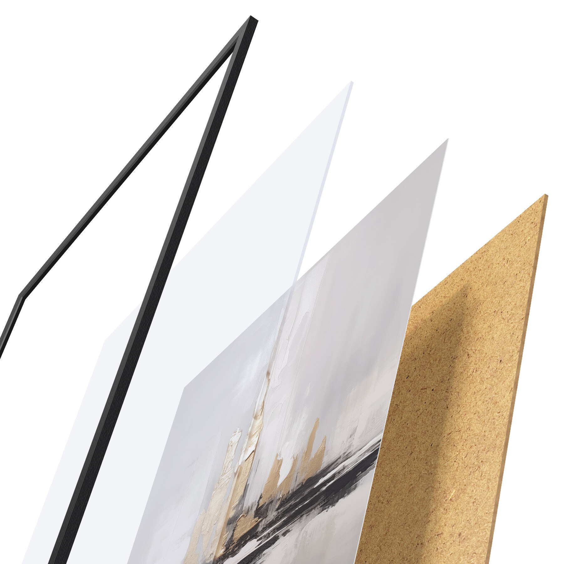 Постер складається з рами, оргскла, надрукованого зображення та підкладки з ДСП. Завдяки кріпленням на звороті плакат можна одразу ж повісити на стіну.