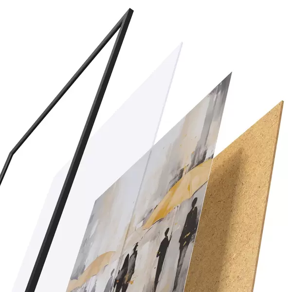 Постер складається з рами, оргскла, надрукованого зображення та підкладки з ДСП. Завдяки кріпленням на звороті плакат можна одразу ж повісити на стіну.