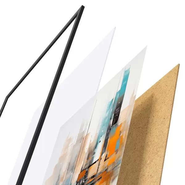 Постер складається з рами, оргскла, надрукованого зображення та підкладки з ДСП. Завдяки кріпленням на звороті плакат можна одразу ж повісити на стіну.
