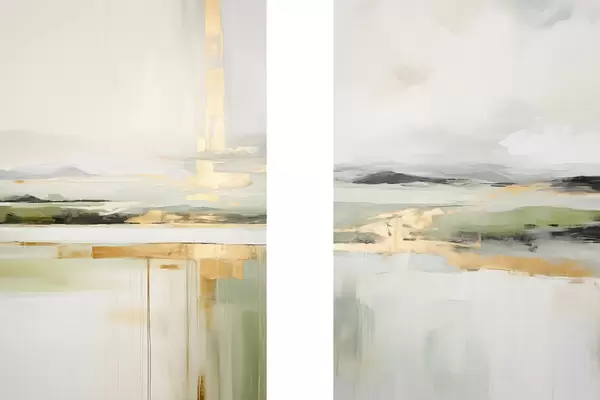 Постер на стіну Абстрактний пейзаж з жовтими акцентами, мінімалістична композиція землі, води та неба, з приглушеними кольорами Nr d00877