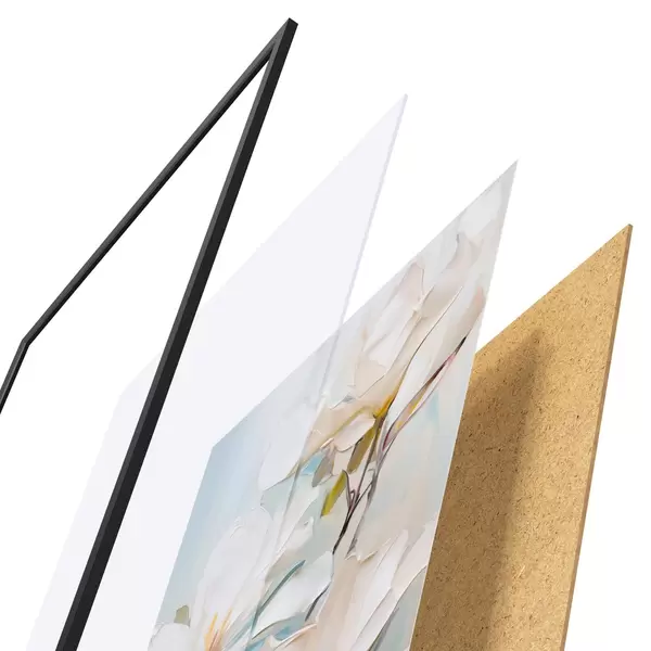 Постер складається з рами, оргскла, надрукованого зображення та підкладки з ДСП. Завдяки кріпленням на звороті плакат можна одразу ж повісити на стіну.