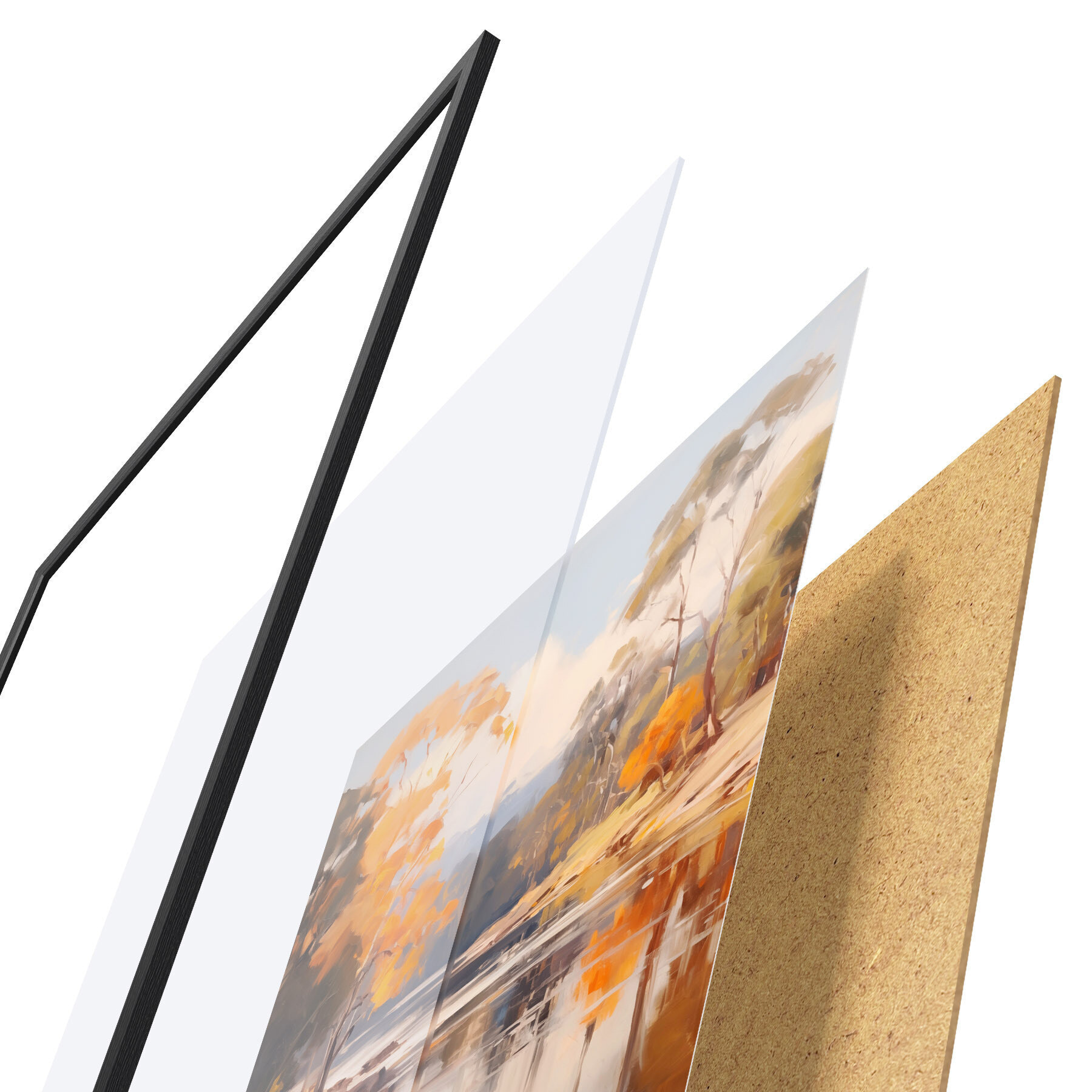 Постер складається з рами, оргскла, надрукованого зображення та підкладки з ДСП. Завдяки кріпленням на звороті плакат можна одразу ж повісити на стіну.