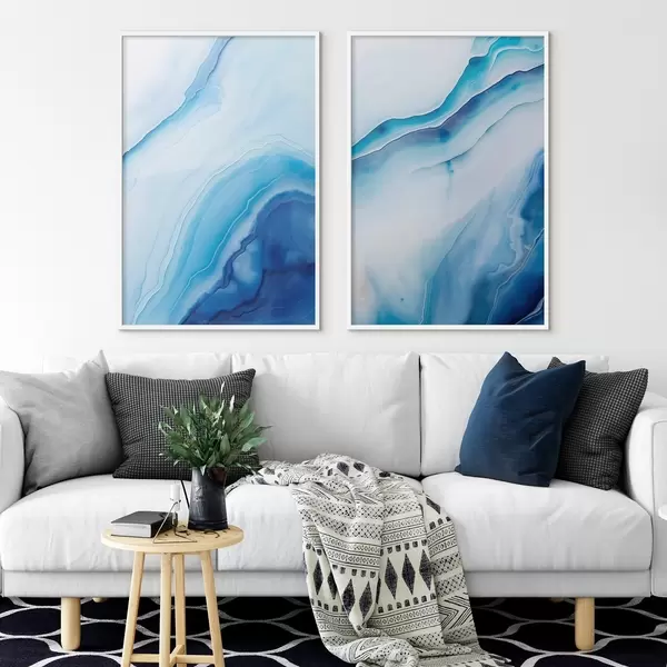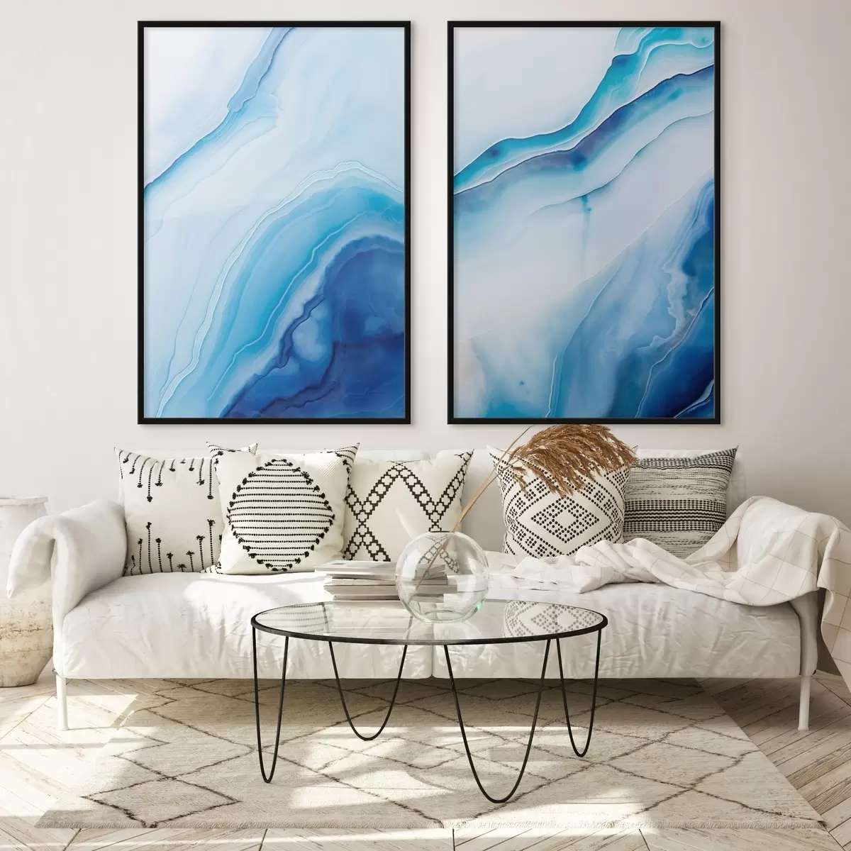 Постер на стіну Абстрактний синьо-білий агатний принт, закручені лінії та градієнти, гладка текстура, сучасне мистецтво, мінімалізм Nr d00888