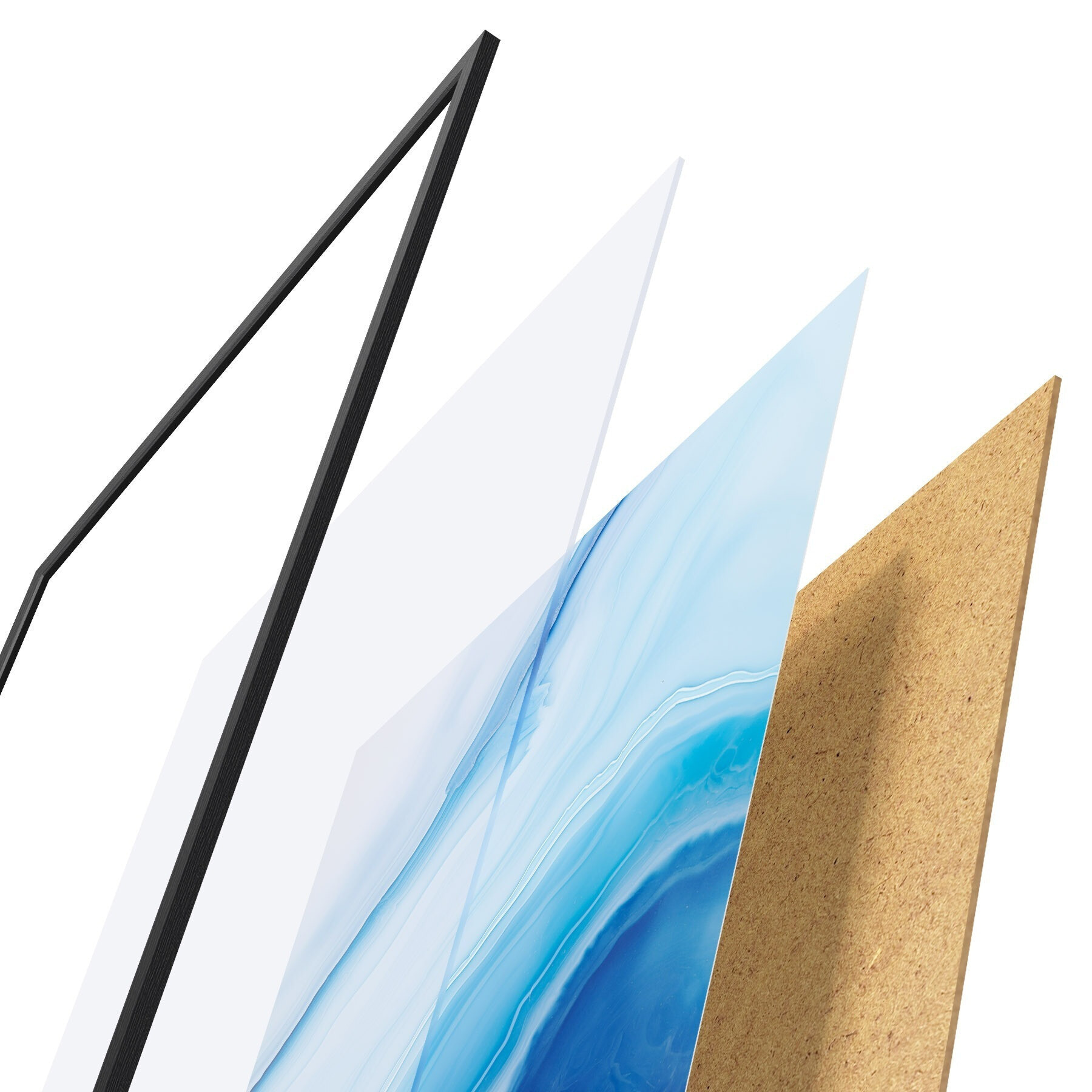 Постер складається з рами, оргскла, надрукованого зображення та підкладки з ДСП. Завдяки кріпленням на звороті плакат можна одразу ж повісити на стіну.