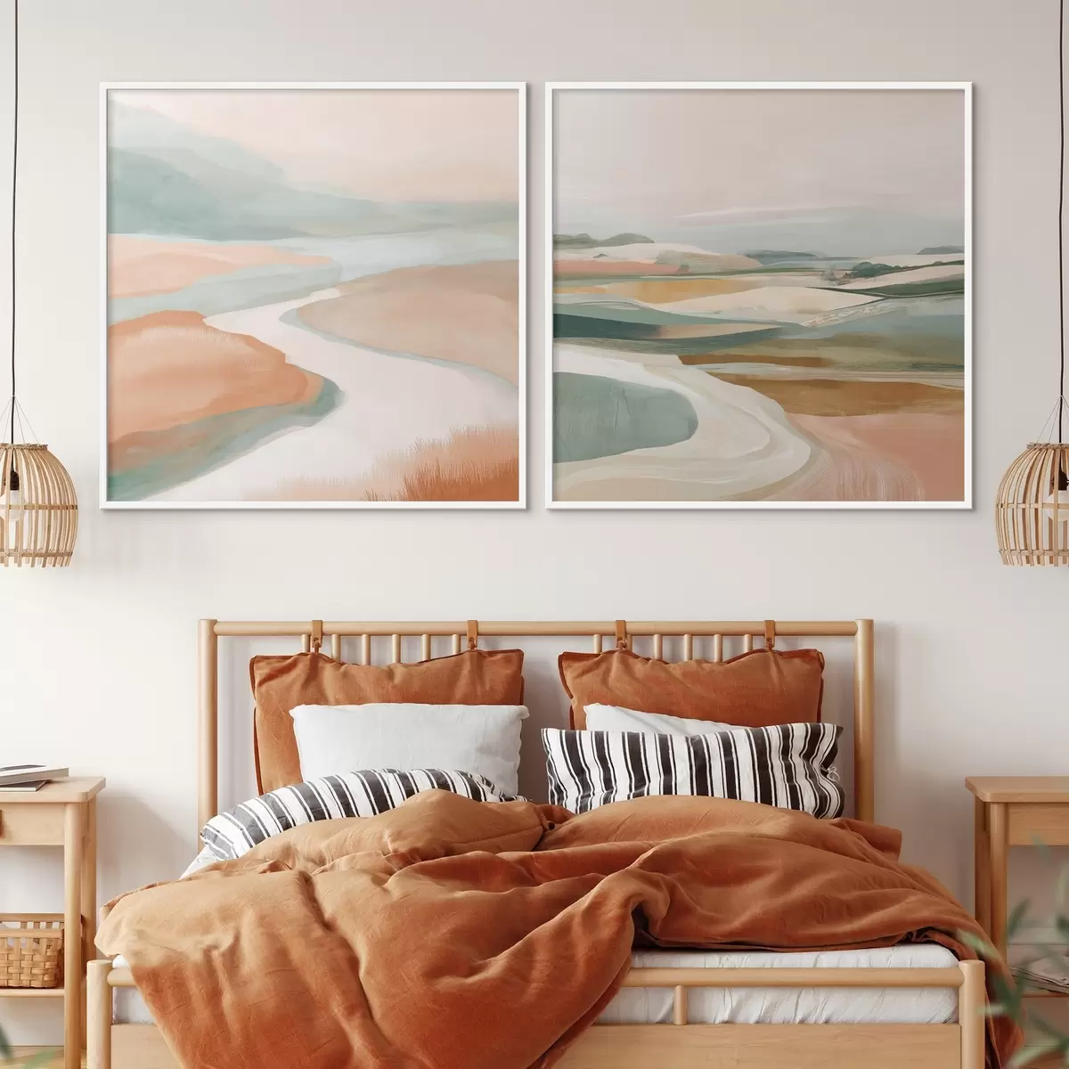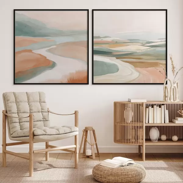 Постер на стіну Абстрактні пагорби та річка в пастельній гамі кольорів Nr d00896