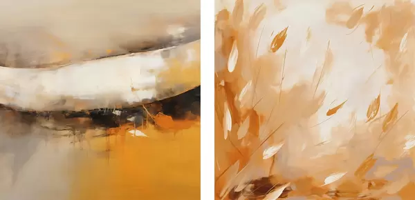 Постер на стіну Абстрактний диптих в олійному стилі з жовто-помаранчевими та чорними тонами Nr d00897