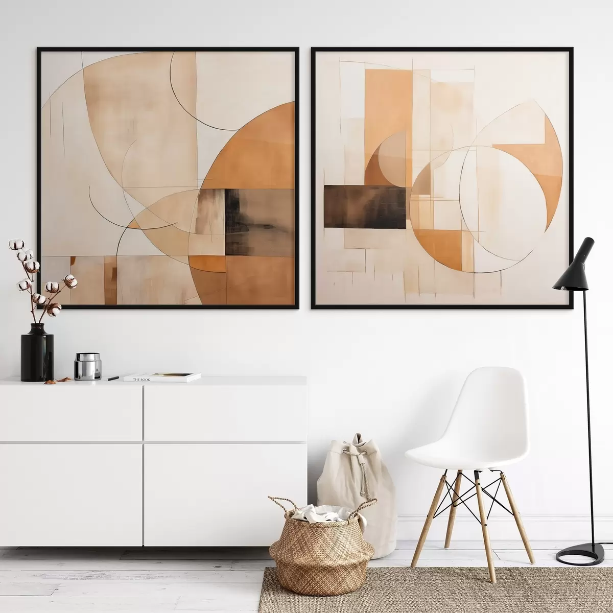 Постер на стіну Сучасна абстракція з колами та лініями в кольорах кави з молоком Nr d00898