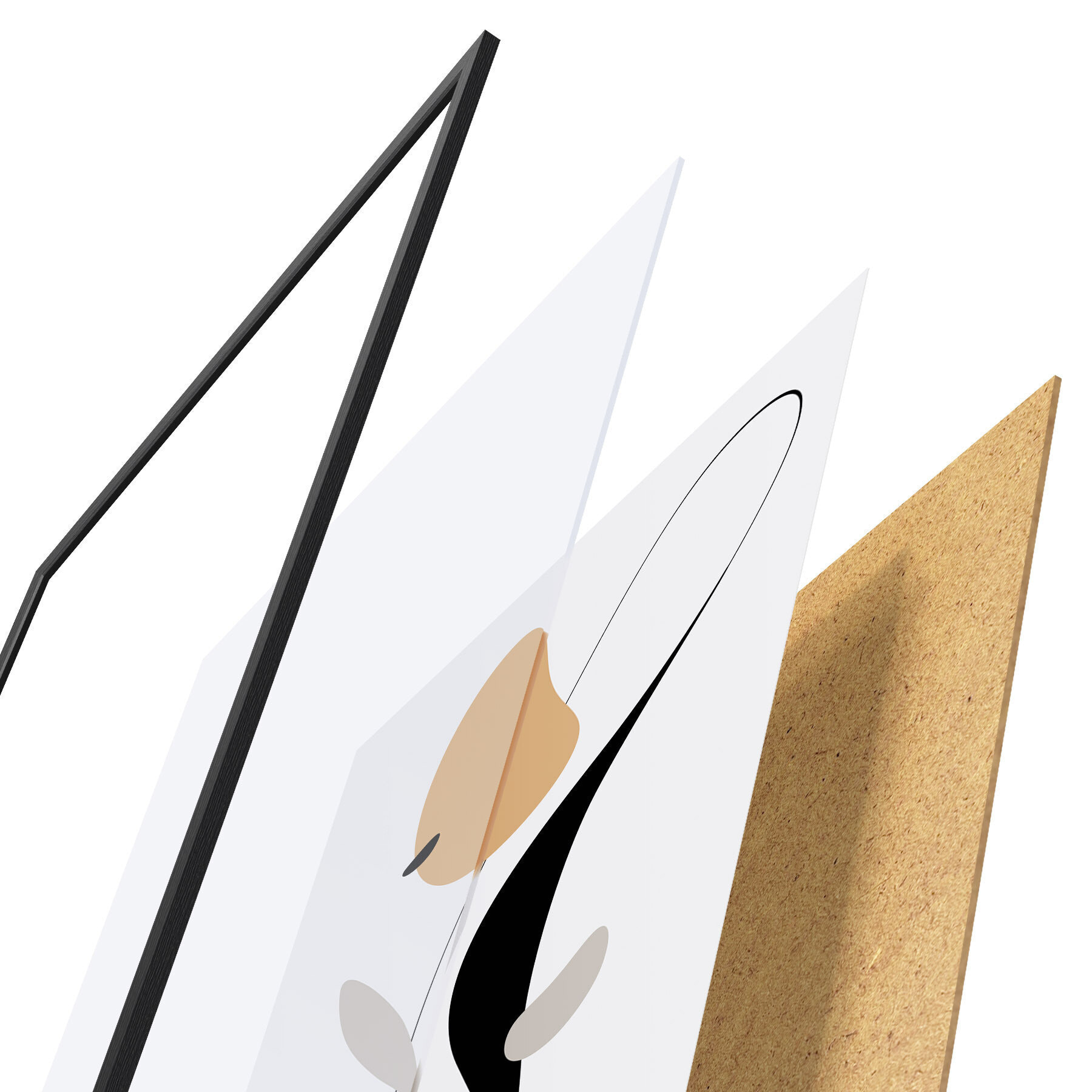 Постер складається з рами, оргскла, надрукованого зображення та підкладки з ДСП. Завдяки кріпленням на звороті плакат можна одразу ж повісити на стіну.
