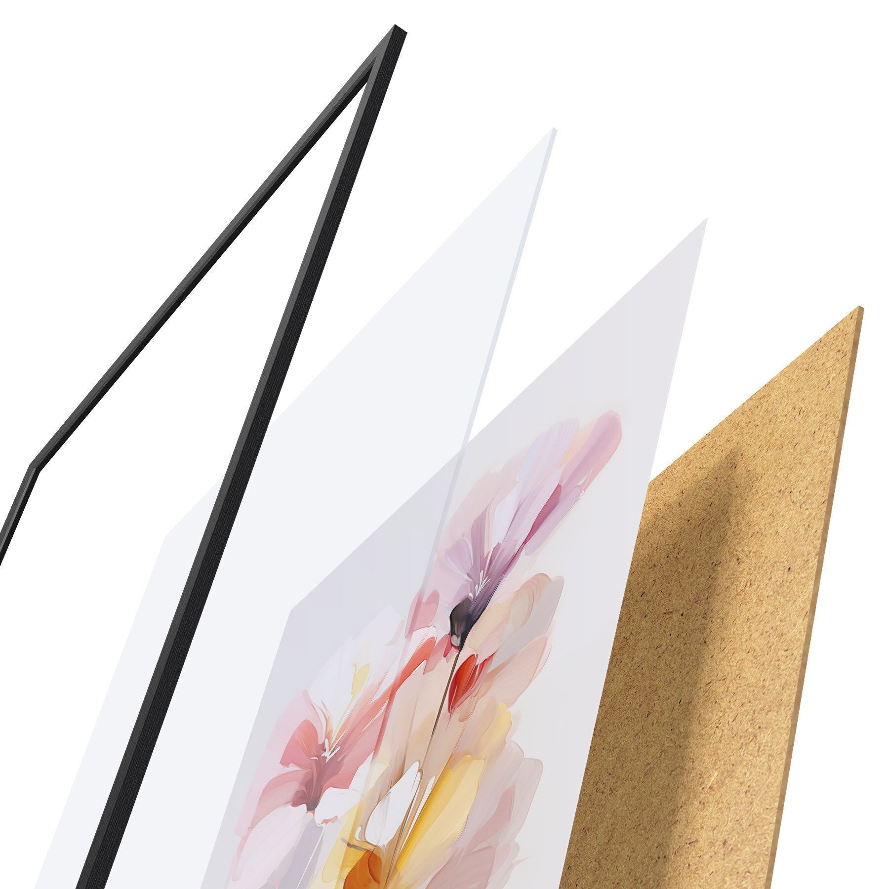 Постер складається з рами, оргскла, надрукованого зображення та підкладки з ДСП. Завдяки кріпленням на звороті плакат можна одразу ж повісити на стіну.