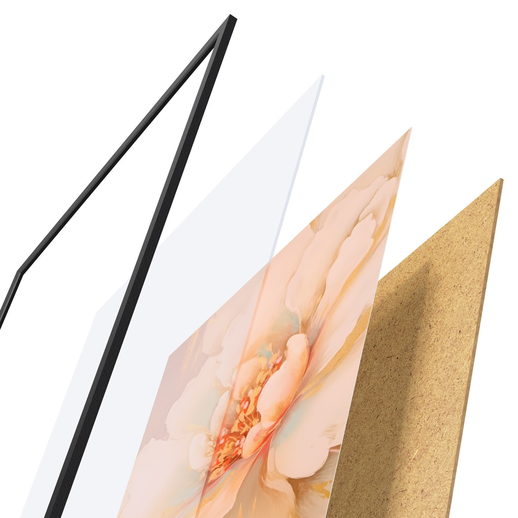 Постер складається з рами, оргскла, надрукованого зображення та підкладки з ДСП. Завдяки кріпленням на звороті плакат можна одразу ж повісити на стіну.