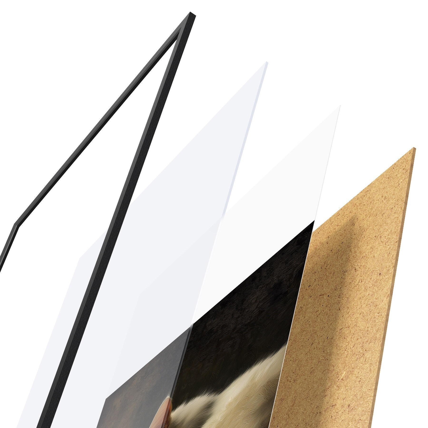 Постер складається з рами, оргскла, надрукованого зображення та підкладки з ДСП. Завдяки кріпленням на звороті плакат можна одразу ж повісити на стіну.