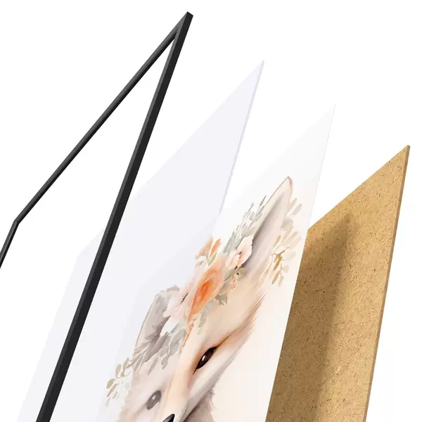 Постер складається з рами, оргскла, надрукованого зображення та підкладки з ДСП. Завдяки кріпленням на звороті плакат можна одразу ж повісити на стіну.