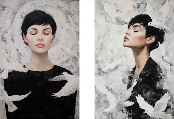 Постер на стіну Жінка з голубами Nr d00923