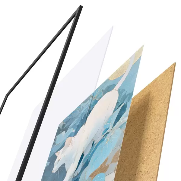 Постер складається з рами, оргскла, надрукованого зображення та підкладки з ДСП. Завдяки кріпленням на звороті плакат можна одразу ж повісити на стіну.