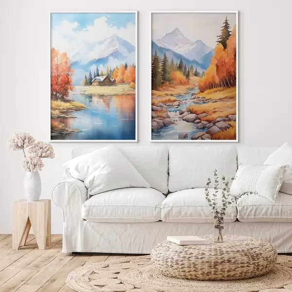 Постер на стіну Осінній гірський пейзаж з озером і річкою Nr d00929