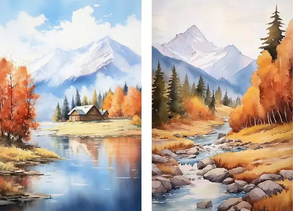 Постер на стіну Осінній гірський пейзаж з озером і річкою Nr d00929