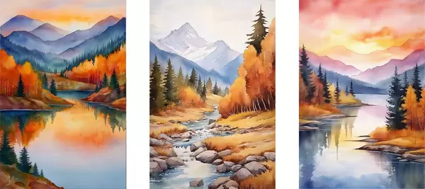 Постер на стіну Осінній гірський пейзаж у теплих відтінках заходу сонця Nr d00930