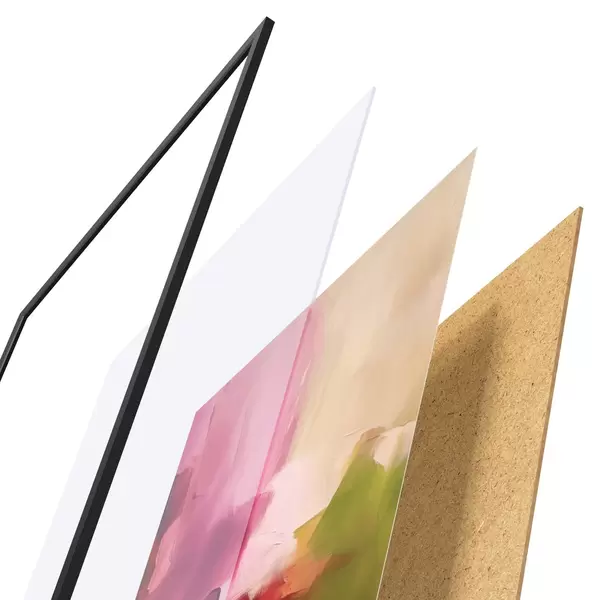 Постер складається з рами, оргскла, надрукованого зображення та підкладки з ДСП. Завдяки кріпленням на звороті плакат можна одразу ж повісити на стіну.