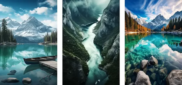 Постер на стіну Альпійські озера та краєвиди фіордів у прохолодних блакитних тонах Nr d00961