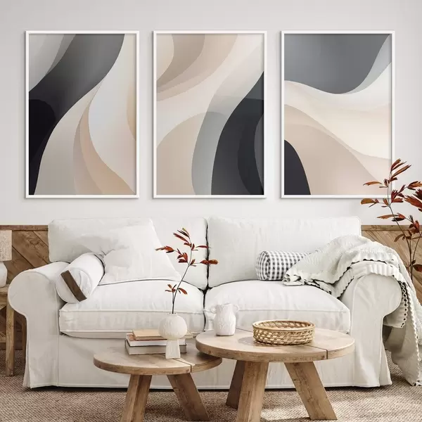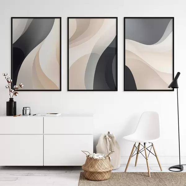 Постер на стіну Мінімалістичні плавні лінії в кремовому, сірому та чорному кольорах Nr d00962