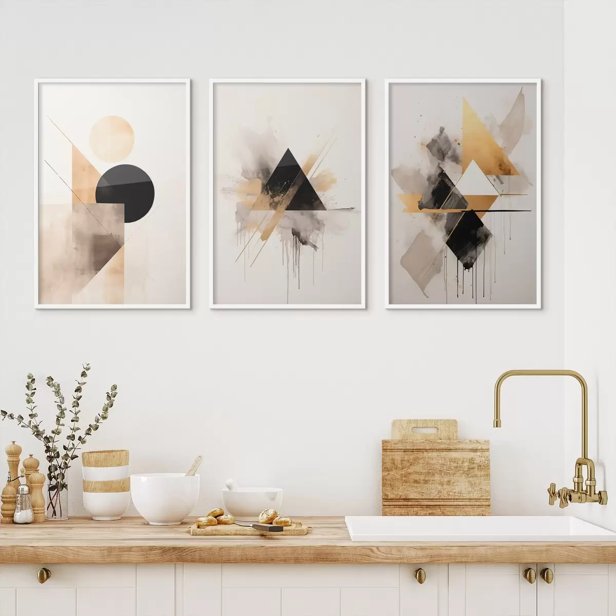 Постер на стіну Геометричні трикутники з бризками чорнила, чорні та охристі Nr d00963