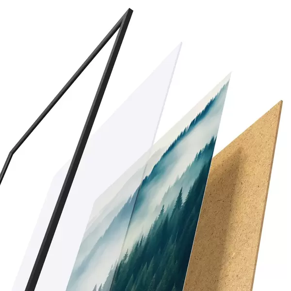 Постер складається з рами, оргскла, надрукованого зображення та підкладки з ДСП. Завдяки кріпленням на звороті плакат можна одразу ж повісити на стіну.