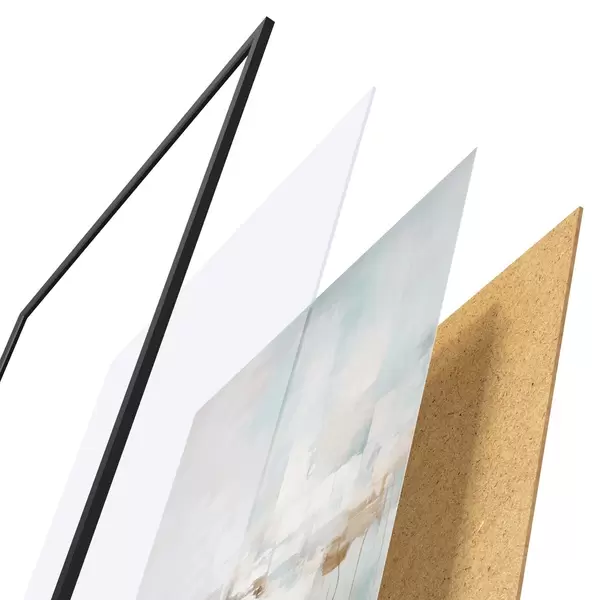 Постер складається з рами, оргскла, надрукованого зображення та підкладки з ДСП. Завдяки кріпленням на звороті плакат можна одразу ж повісити на стіну.