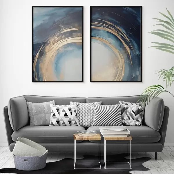 Постер на стіну Опівнічно-синій круговий мазок з металевими дугами Nr d00969