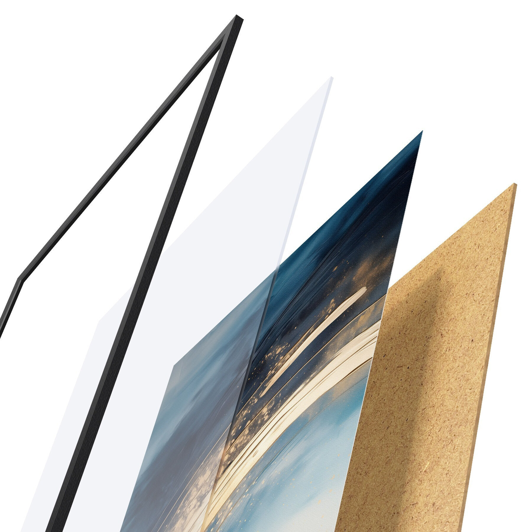 Постер складається з рами, оргскла, надрукованого зображення та підкладки з ДСП. Завдяки кріпленням на звороті плакат можна одразу ж повісити на стіну.