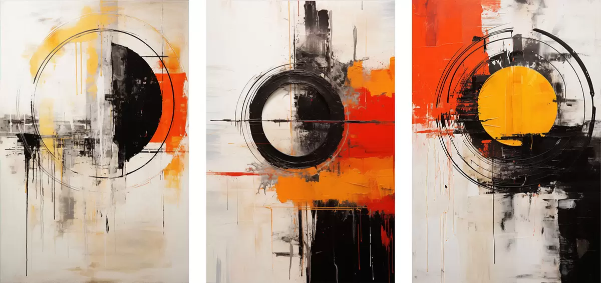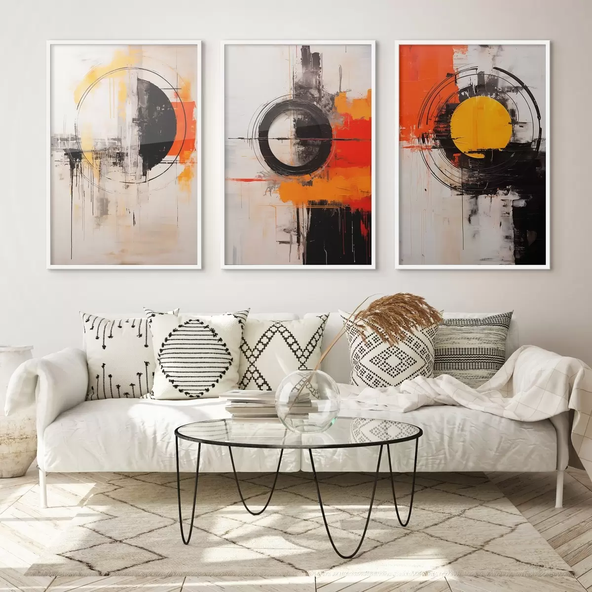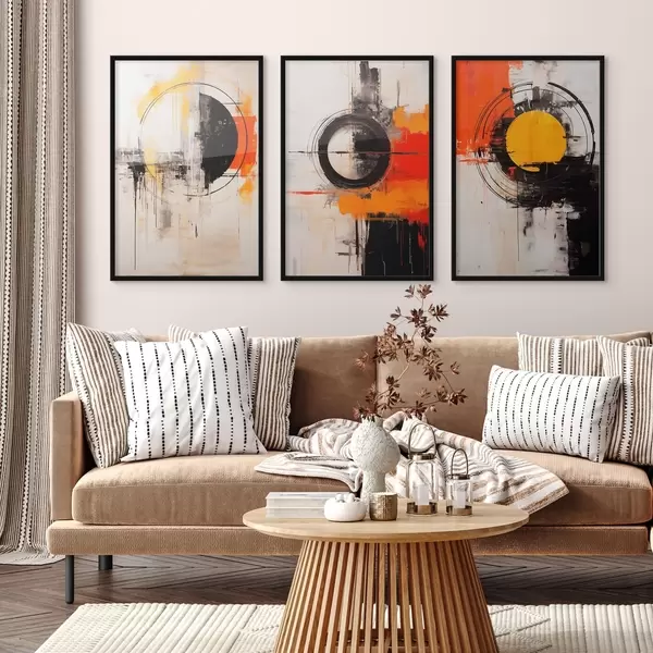 Постер на стіну Текстуровані кола та сміливі штрихи чорного, охристого та помаранчевого кольорів Nr d00974