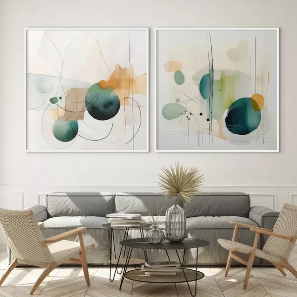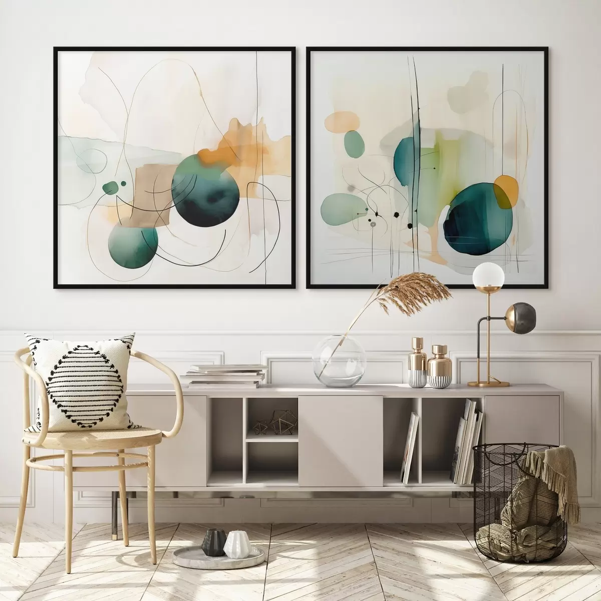 Постер на стіну Двочастинна абстрактна композиція з м'якими кольоровими плямами Nr d00985