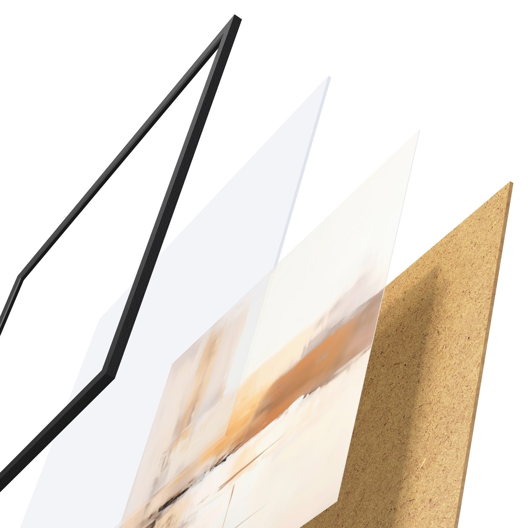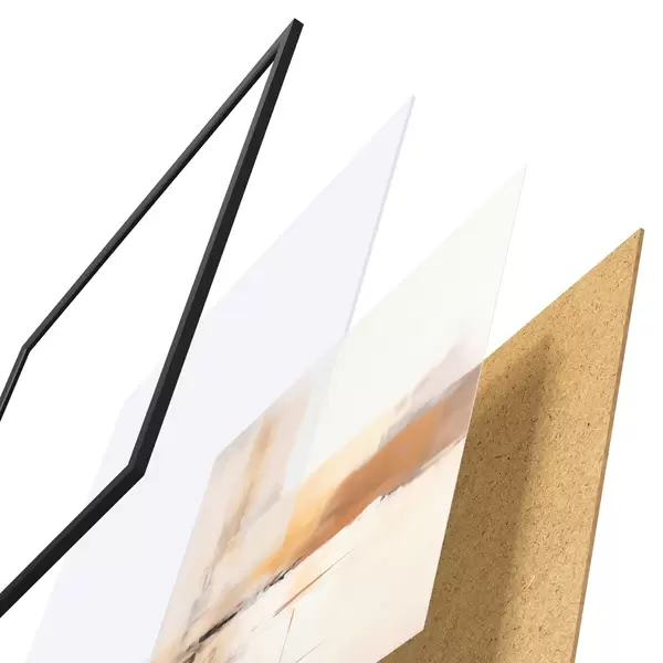 Постер складається з рами, оргскла, надрукованого зображення та підкладки з ДСП. Завдяки кріпленням на звороті плакат можна одразу ж повісити на стіну.