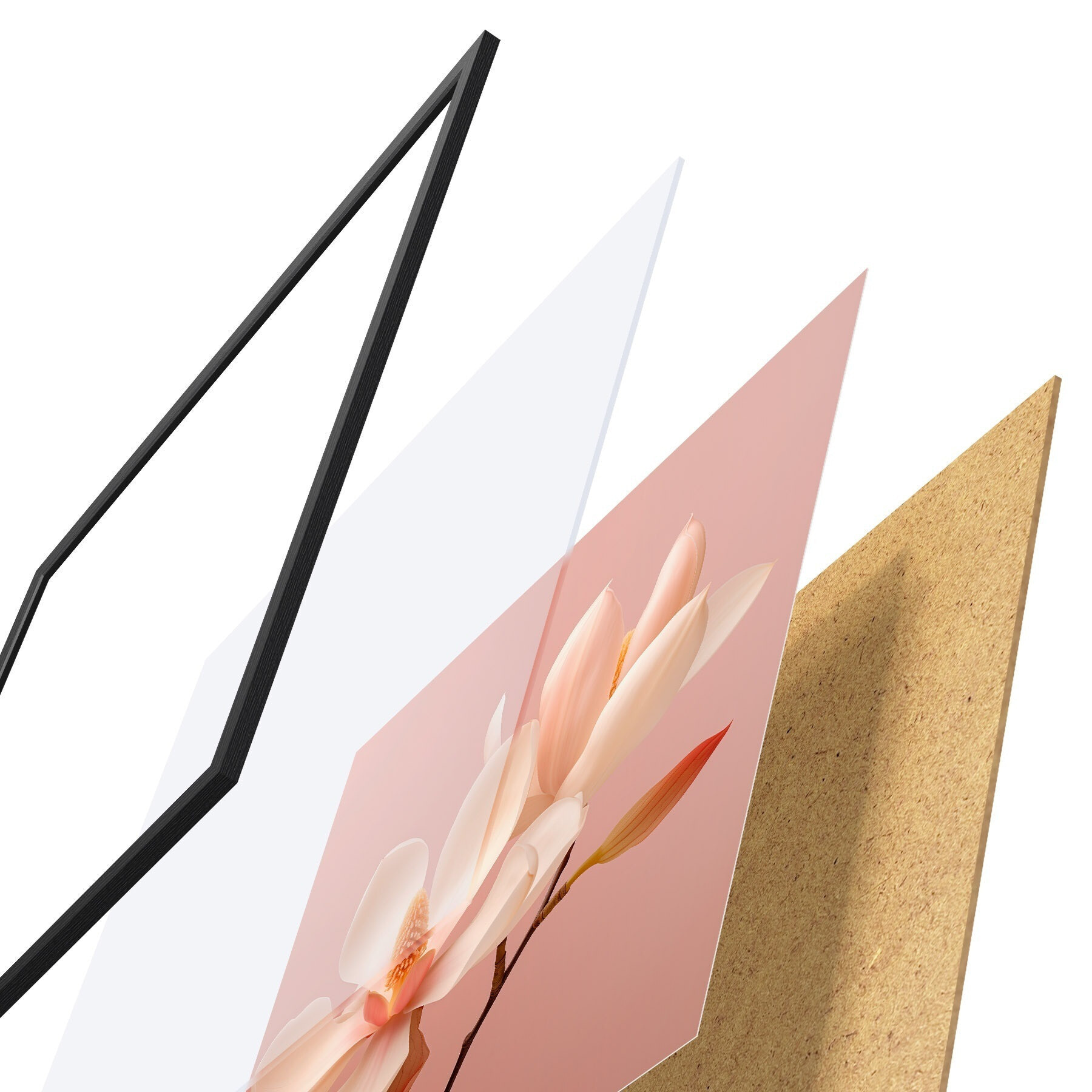 Постер складається з рами, оргскла, надрукованого зображення та підкладки з ДСП. Завдяки кріпленням на звороті плакат можна одразу ж повісити на стіну.