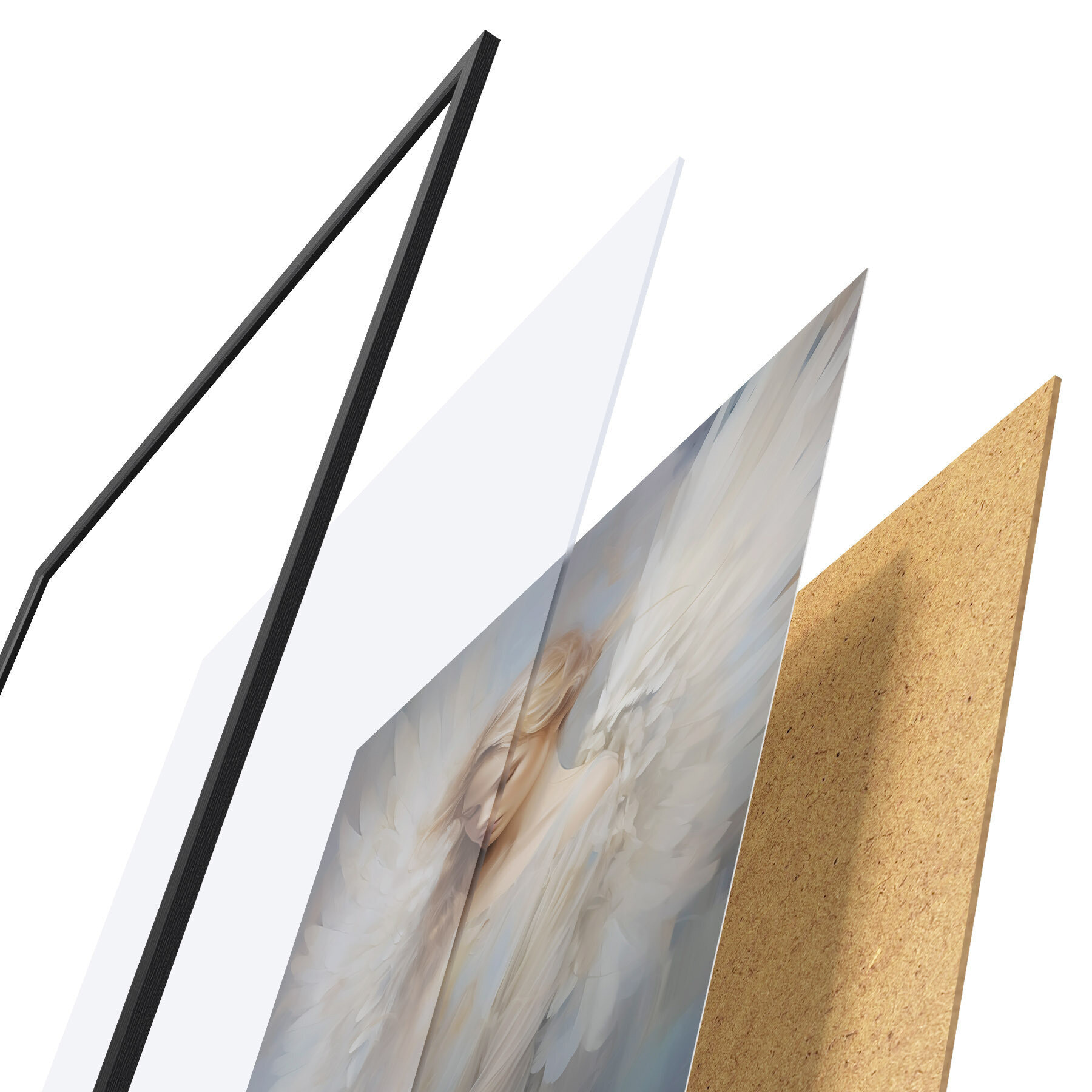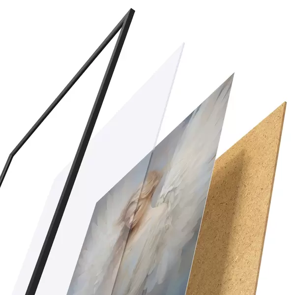 Постер складається з рами, оргскла, надрукованого зображення та підкладки з ДСП. Завдяки кріпленням на звороті плакат можна одразу ж повісити на стіну.