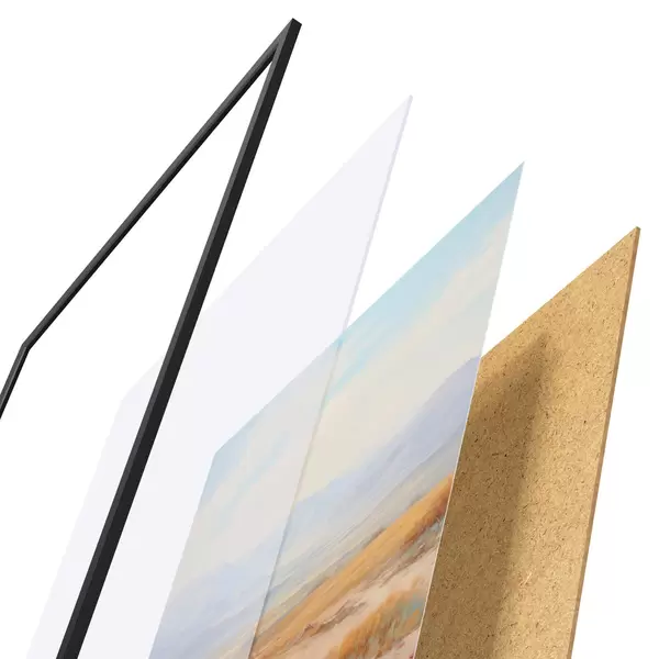 Постер складається з рами, оргскла, надрукованого зображення та підкладки з ДСП. Завдяки кріпленням на звороті плакат можна одразу ж повісити на стіну.