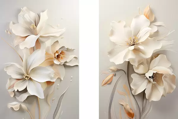 Постер на стіну Білі квіти, пелюстки з м'якими тінями, світло-бежевий фон, елегантна композиція, мінімалістичний стиль Nr d01010