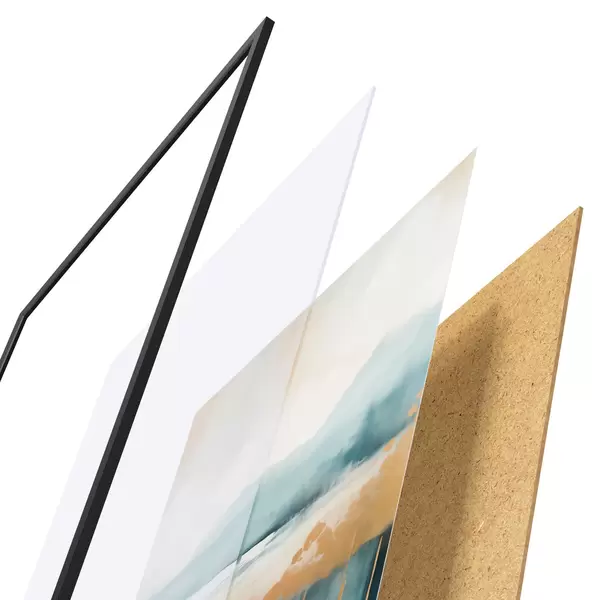 Постер складається з рами, оргскла, надрукованого зображення та підкладки з ДСП. Завдяки кріпленням на звороті плакат можна одразу ж повісити на стіну.