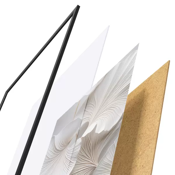 Постер складається з рами, оргскла, надрукованого зображення та підкладки з ДСП. Завдяки кріпленням на звороті плакат можна одразу ж повісити на стіну.