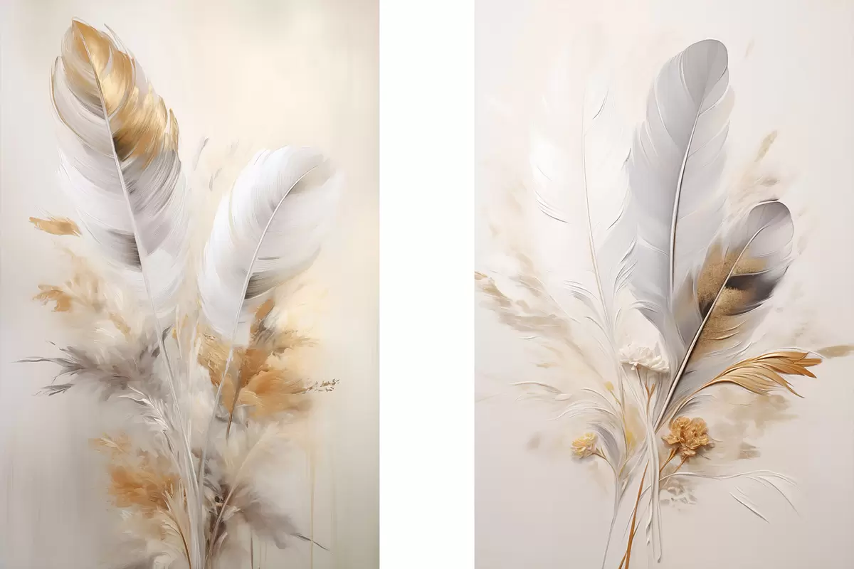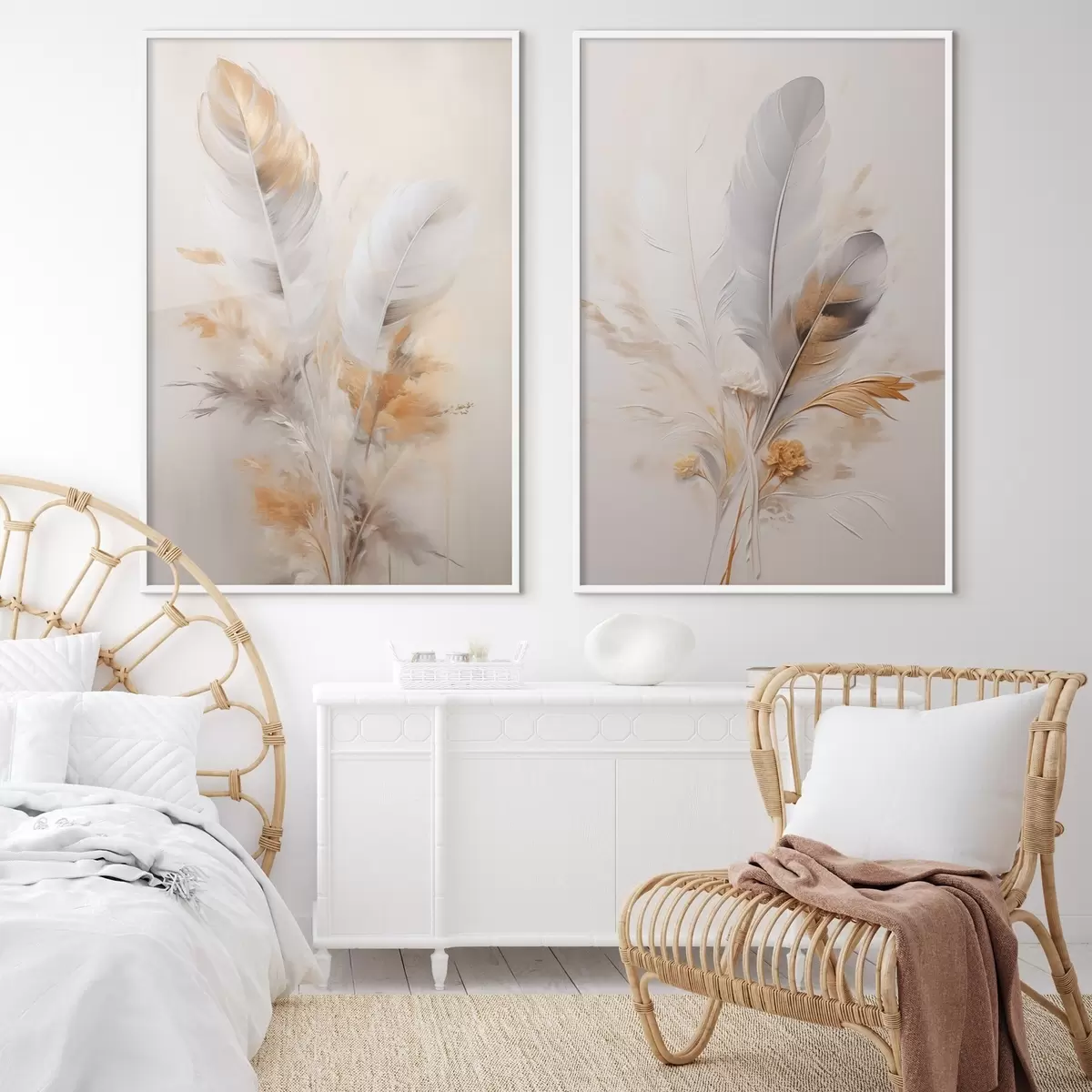 Постер на стіну Абстрактні пір'я, оточені бежевими та коричневими пучками, м'які та ніжні, на світло-бежевому тлі Nr d01016