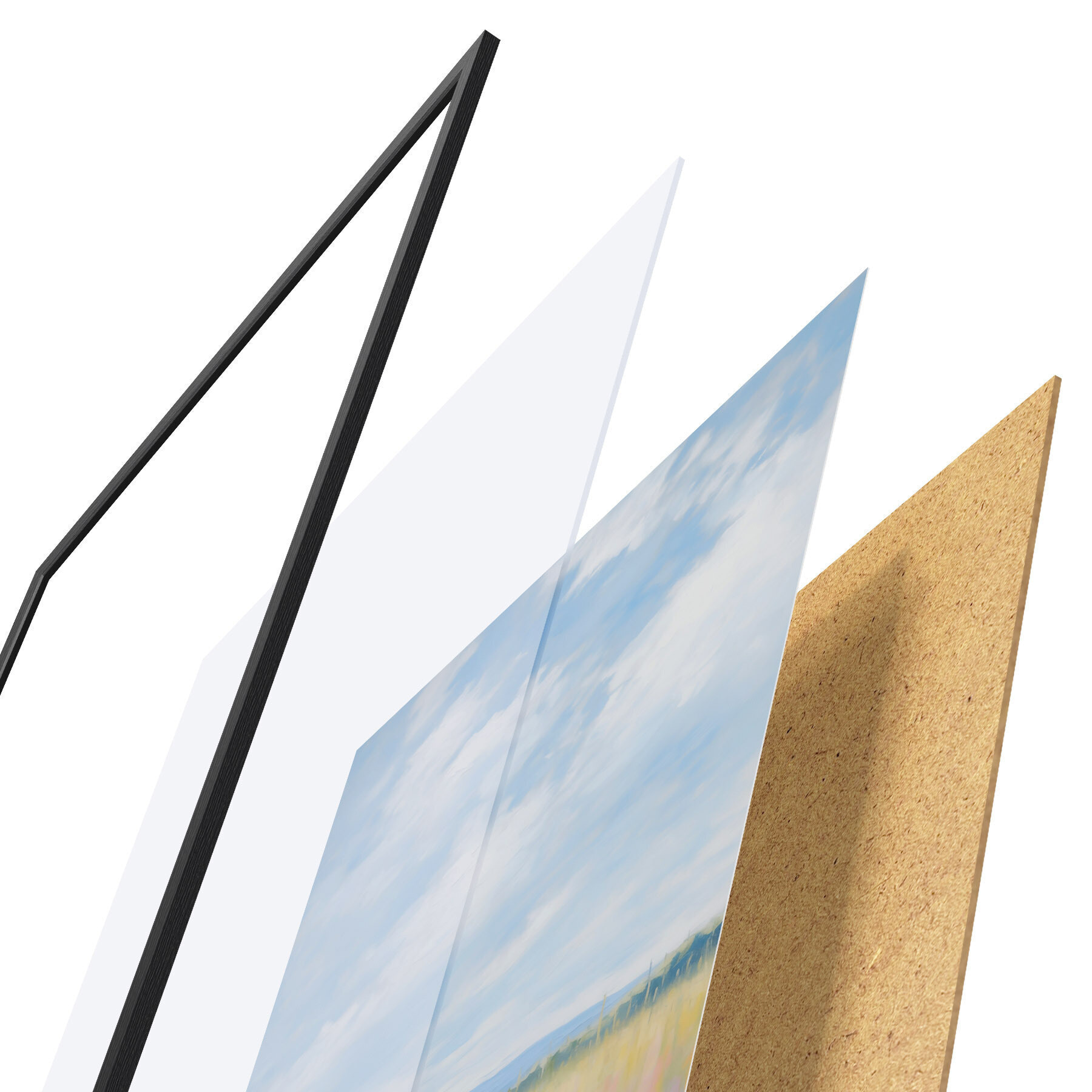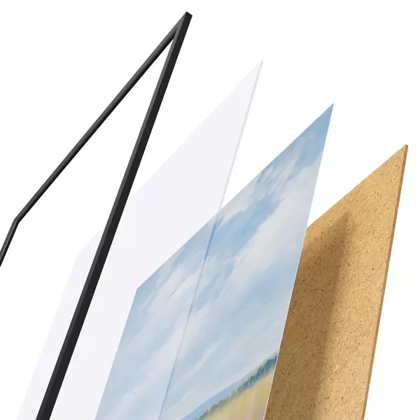 Постер складається з рами, оргскла, надрукованого зображення та підкладки з ДСП. Завдяки кріпленням на звороті плакат можна одразу ж повісити на стіну.