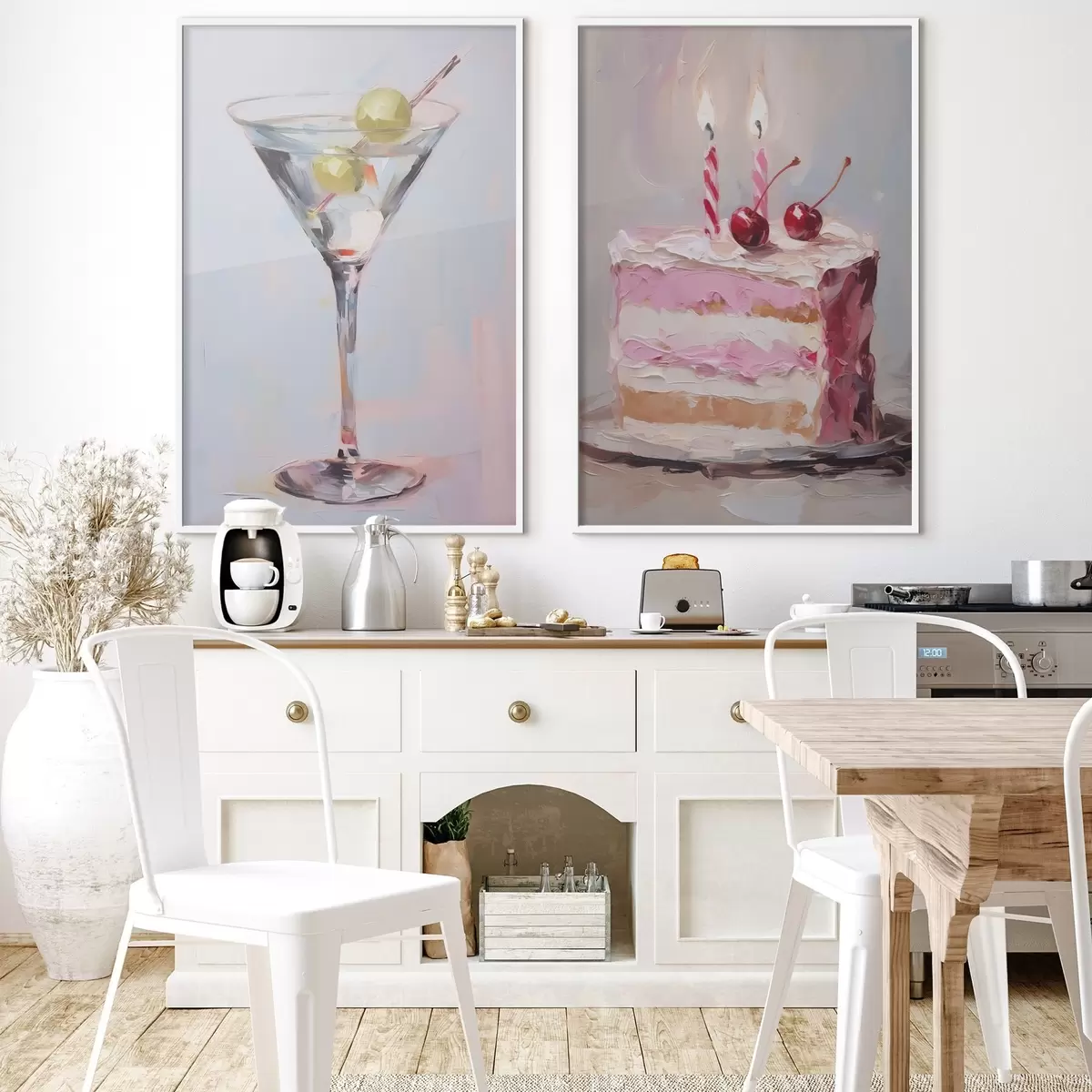 Постер на стіну Склянка з напоєм і шматочком торта, імітація живопису Nr d01019