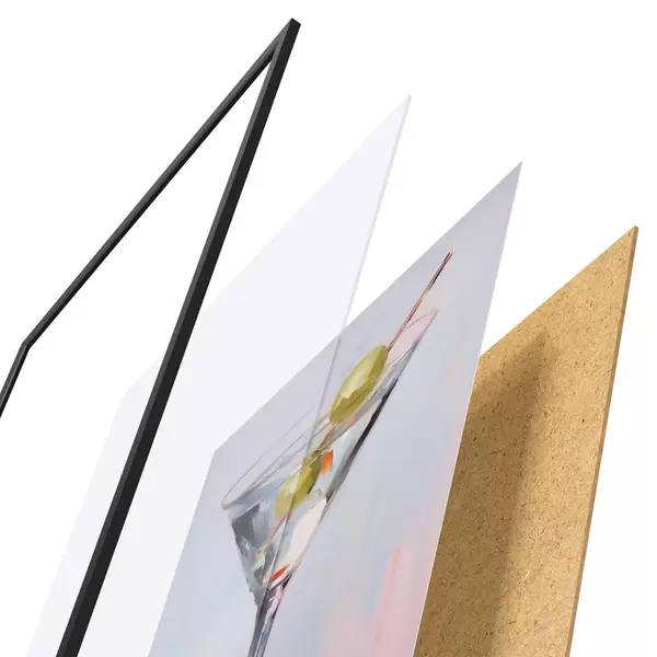 Постер складається з рами, оргскла, надрукованого зображення та підкладки з ДСП. Завдяки кріпленням на звороті плакат можна одразу ж повісити на стіну.