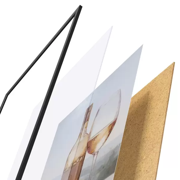 Постер складається з рами, оргскла, надрукованого зображення та підкладки з ДСП. Завдяки кріпленням на звороті плакат можна одразу ж повісити на стіну.