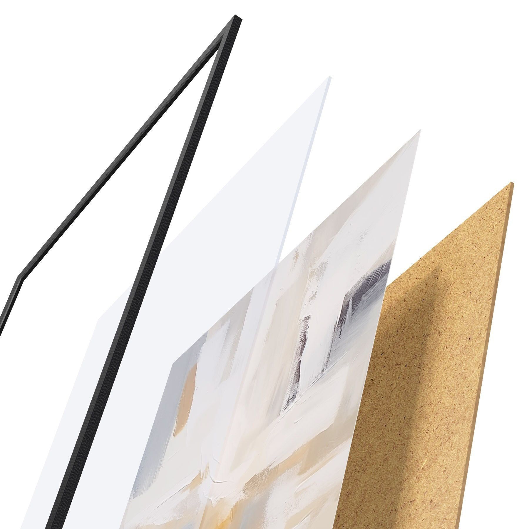 Постер складається з рами, оргскла, надрукованого зображення та підкладки з ДСП. Завдяки кріпленням на звороті плакат можна одразу ж повісити на стіну.