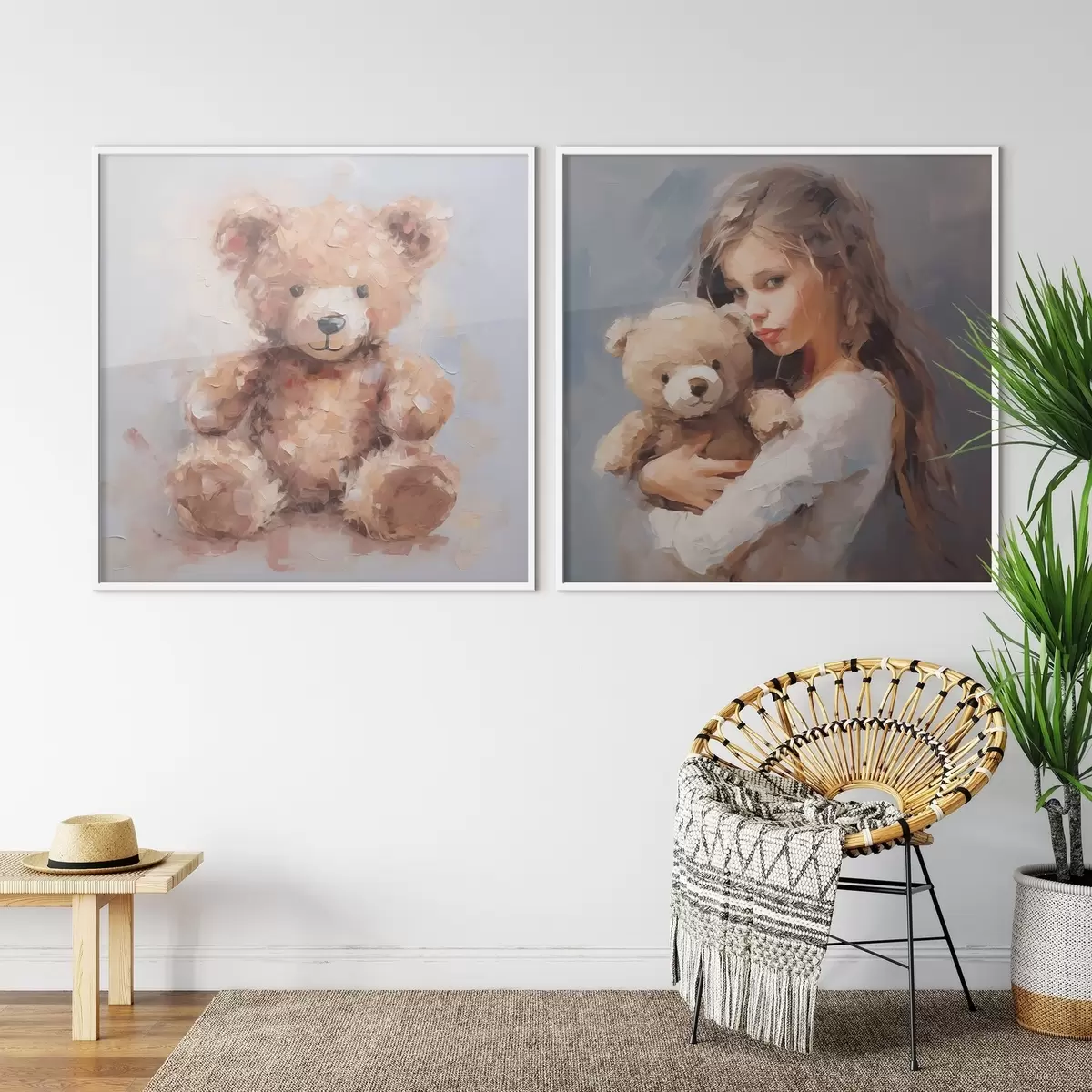 Постер на стіну Дівчинка з іграшковим ведмедиком, імітація картини Nr d01029