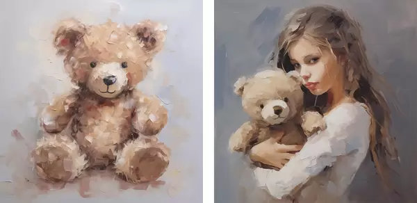 Постер на стіну Дівчинка з іграшковим ведмедиком, імітація картини Nr d01029
