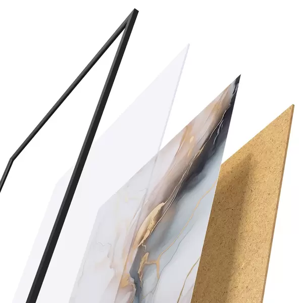 Постер складається з рами, оргскла, надрукованого зображення та підкладки з ДСП. Завдяки кріпленням на звороті плакат можна одразу ж повісити на стіну.