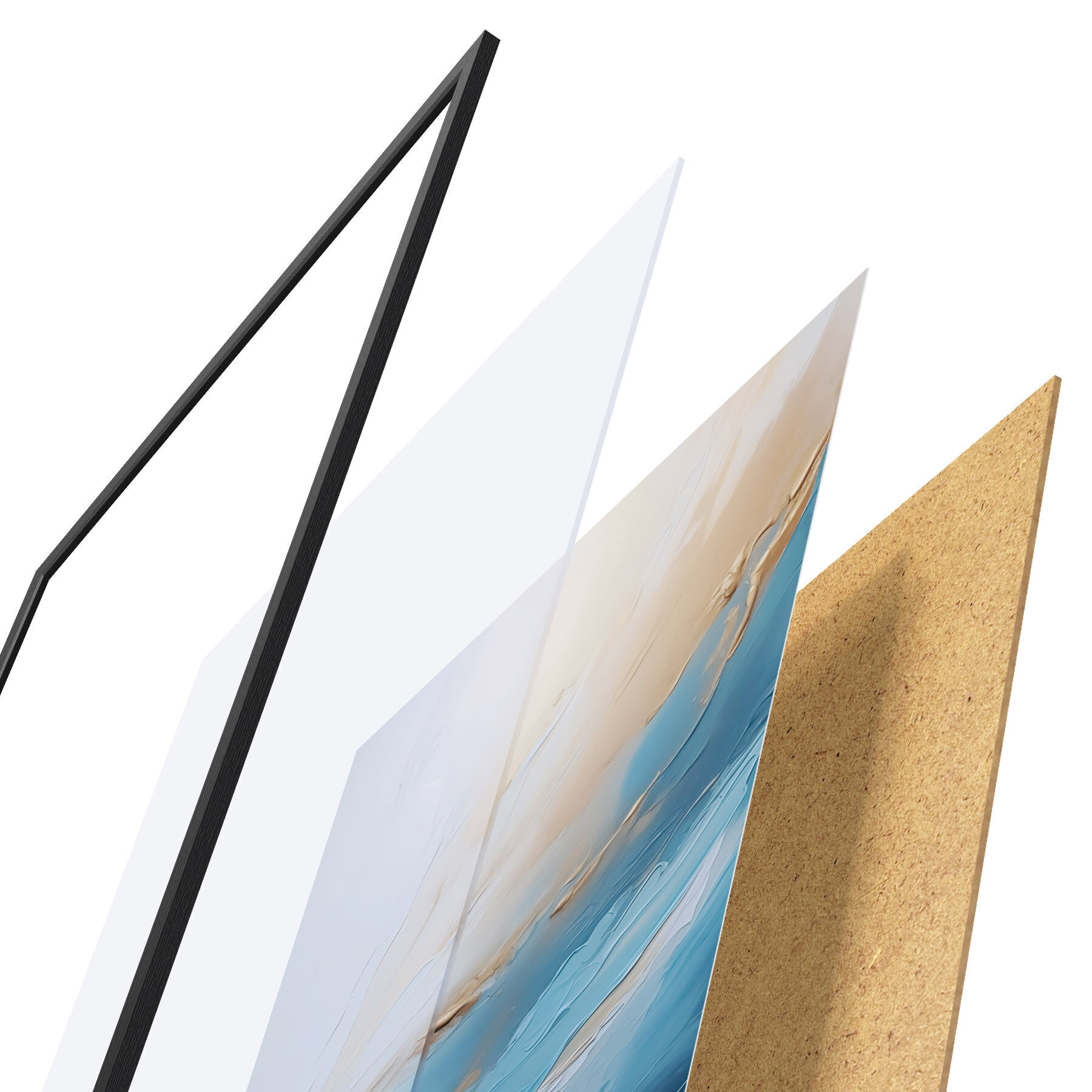 Постер складається з рами, оргскла, надрукованого зображення та підкладки з ДСП. Завдяки кріпленням на звороті плакат можна одразу ж повісити на стіну.